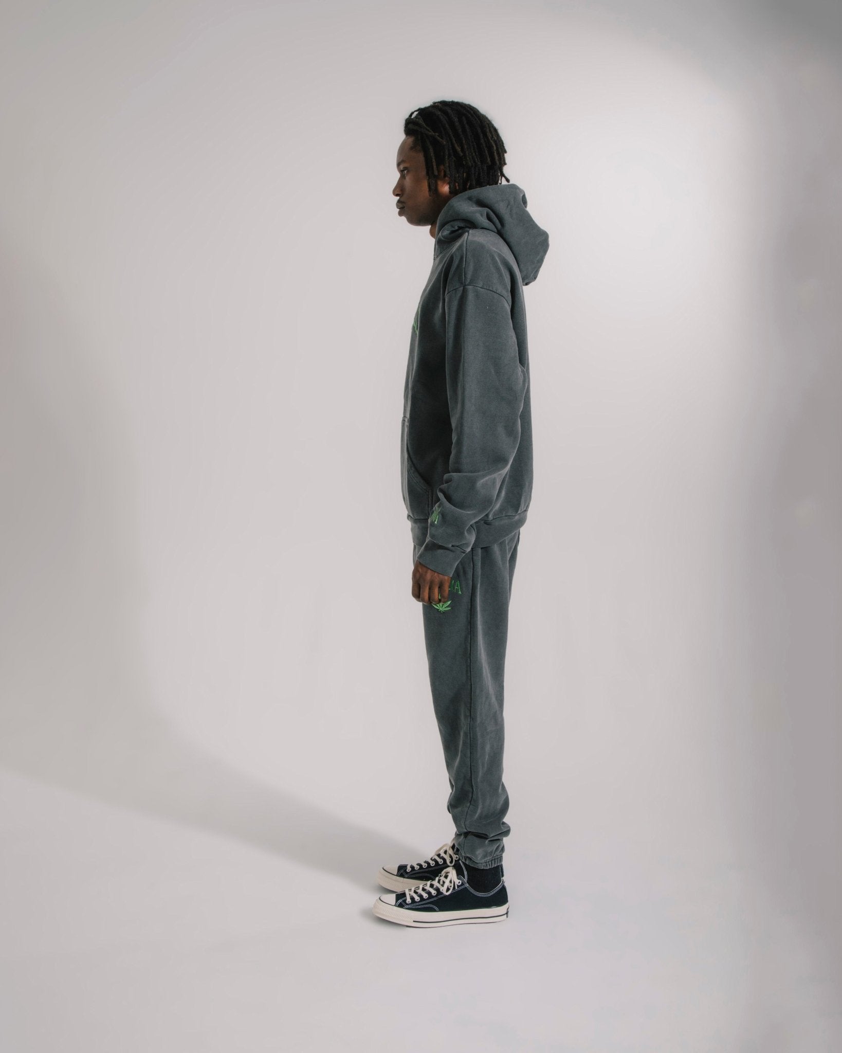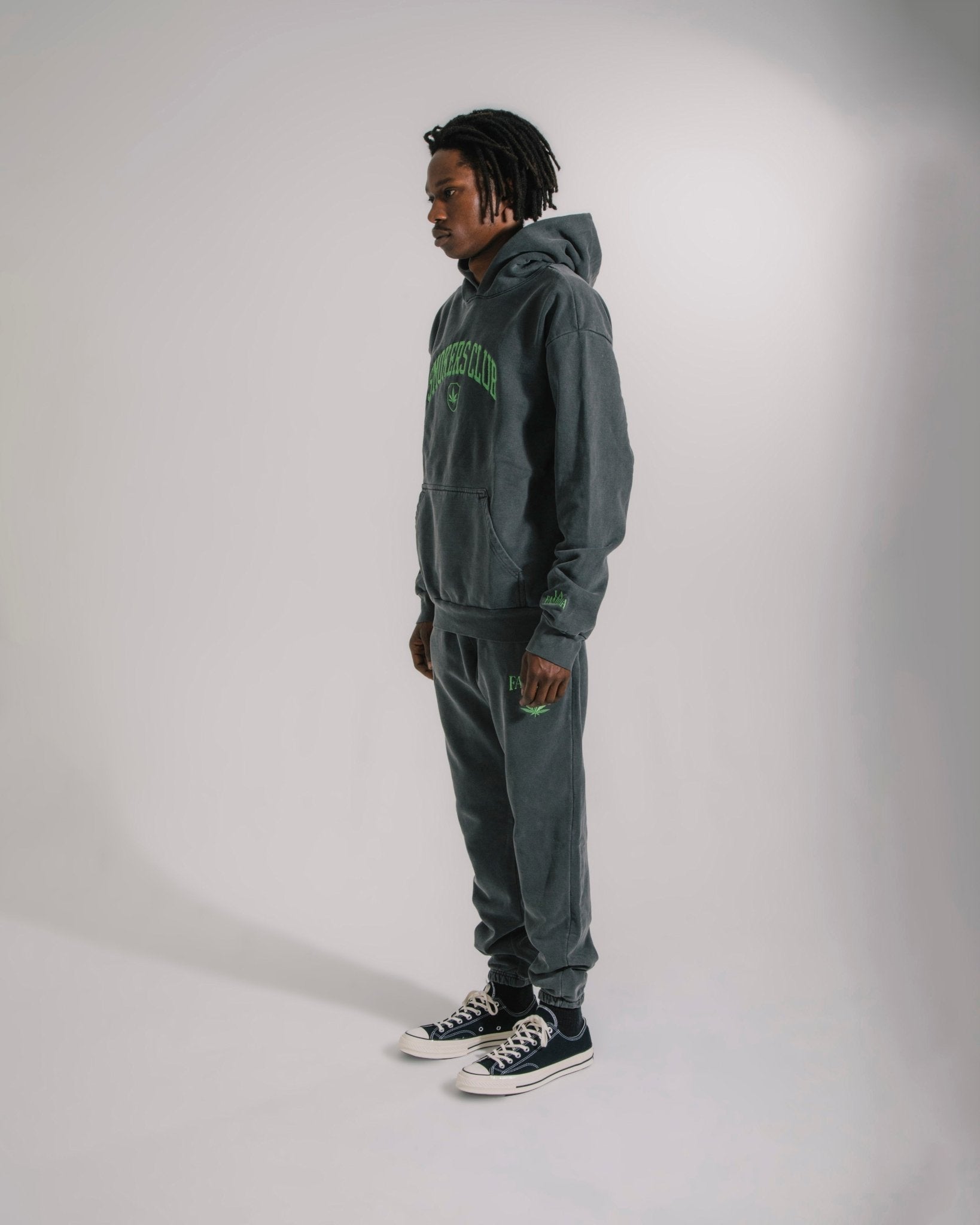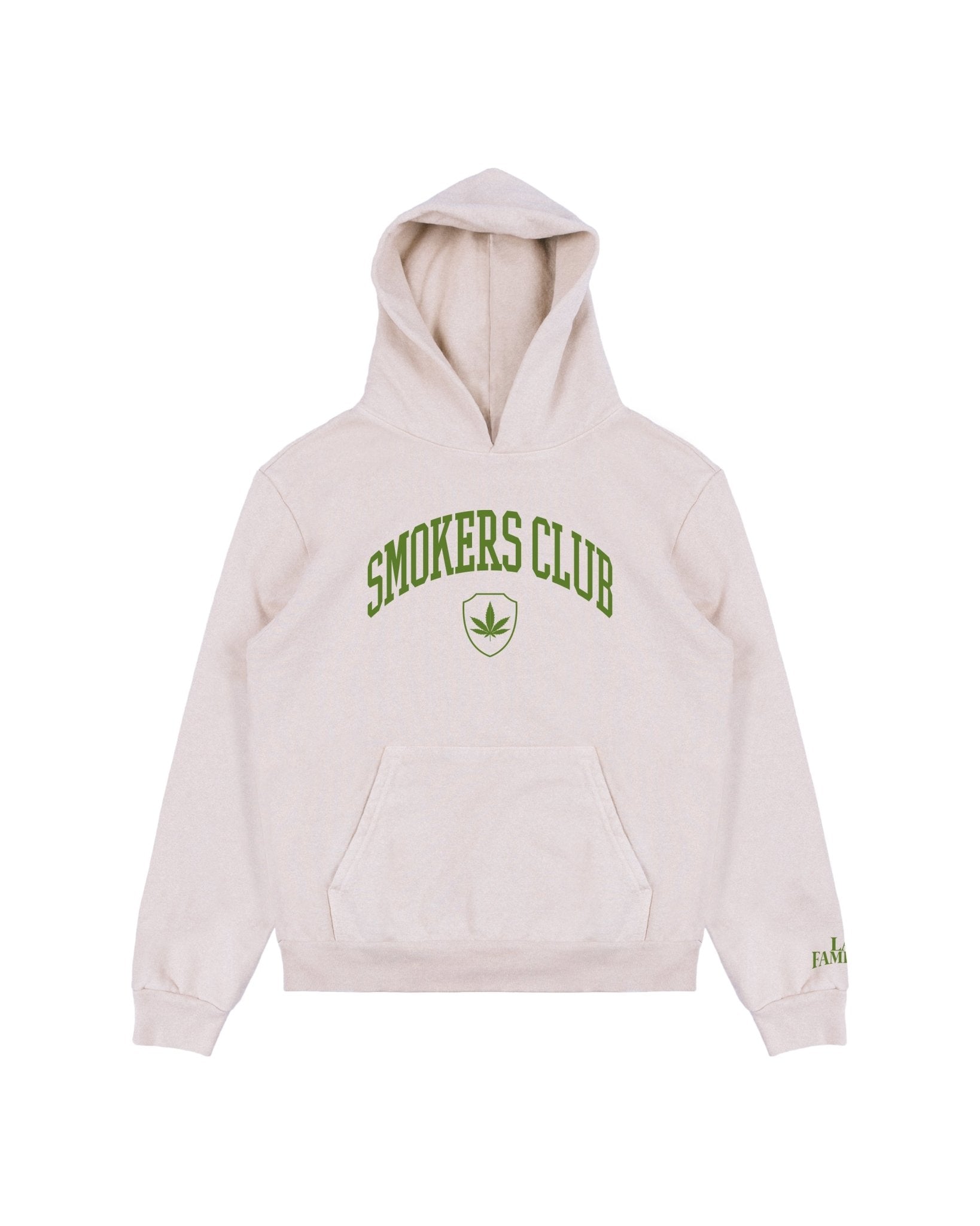 La Familia cozy heavyweight long sleeve hoodie with kangaroo pocket. Green "Smokers Club" embroidered across the chest & La Familia on the left sleeve wrist. Enzyme washed for that vintage look and feel. Custom hand dyed treatment.